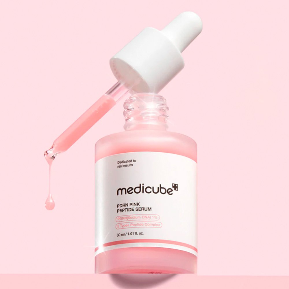 - Sérum: Aplique una cantidad generosa de Sérum Facial Medicube PDRN Pink Peptide en la palma de su mano.