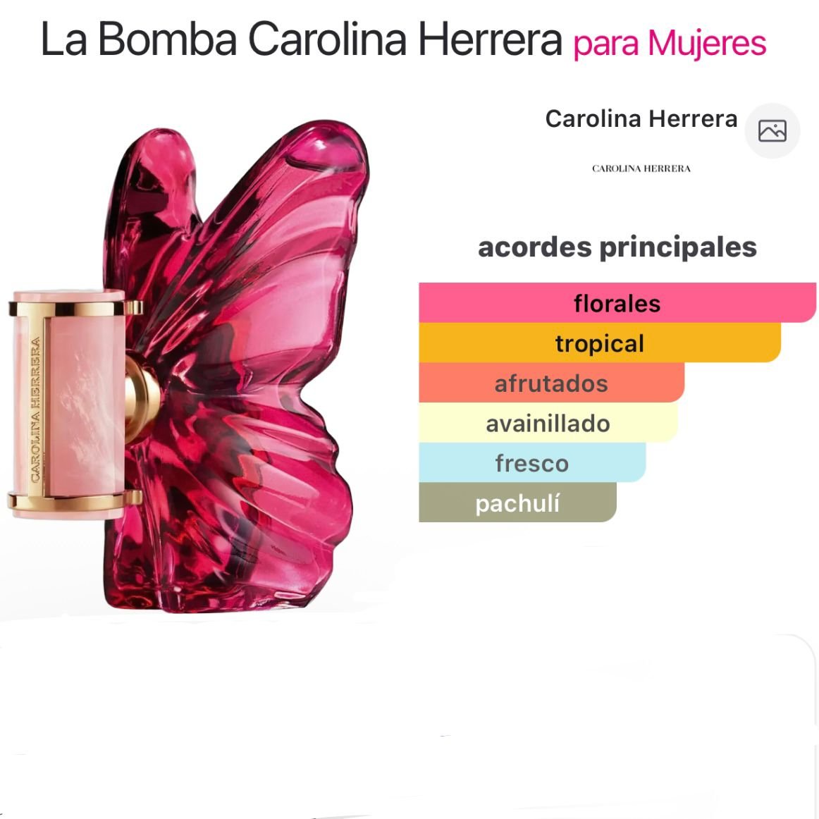 Perfume Carolina Herrera La Bomba EDP es una fragancia oriental floral diseñada para la mujer segura, elegante y llena de personalidad. Su aroma duradero combina sofisticación y sensualidad, creando una experiencia olfativa única que resalta tu feminidad en cada momento del día, es ideal para llevar contigo y disfrutar de un toque de glamour dondequiera que vayas.  Sus notas aromáticas se componen de los siguientes ingredientes.
